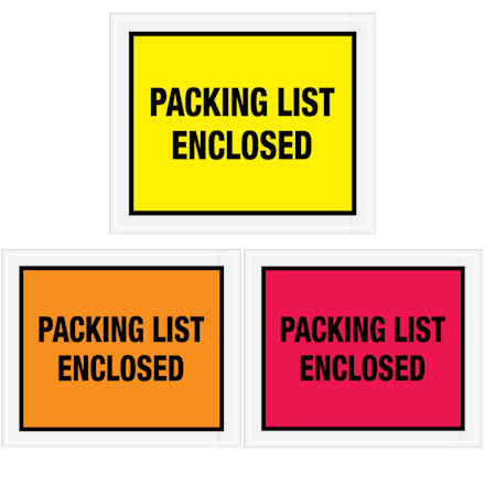 - Panel face, colored Packing List Envelopes are pre-printed with "Packing List Enclosed" on heavy 2 Mil poly.