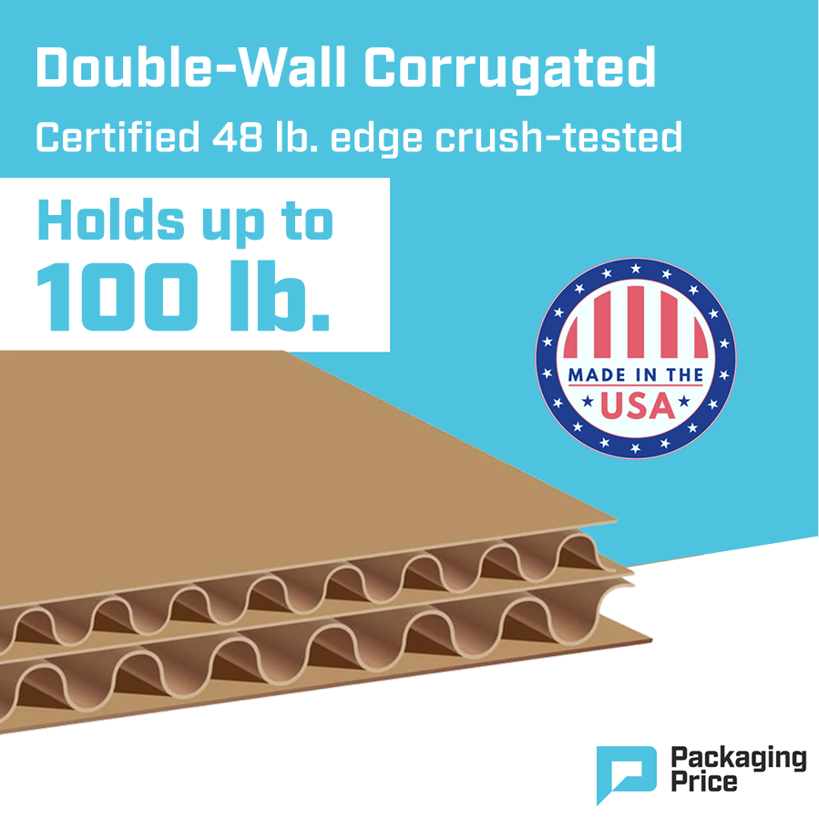 - MATERIAL & STRENGTH: Manufactured from high-quality, durable corrugated cardboard, these boxes are constructed with 48 ECT double wall, c-flute kraft corrugated. Estimated weight capacity is 100 lbs. (This is only a guide, weight must be distributed evenly).