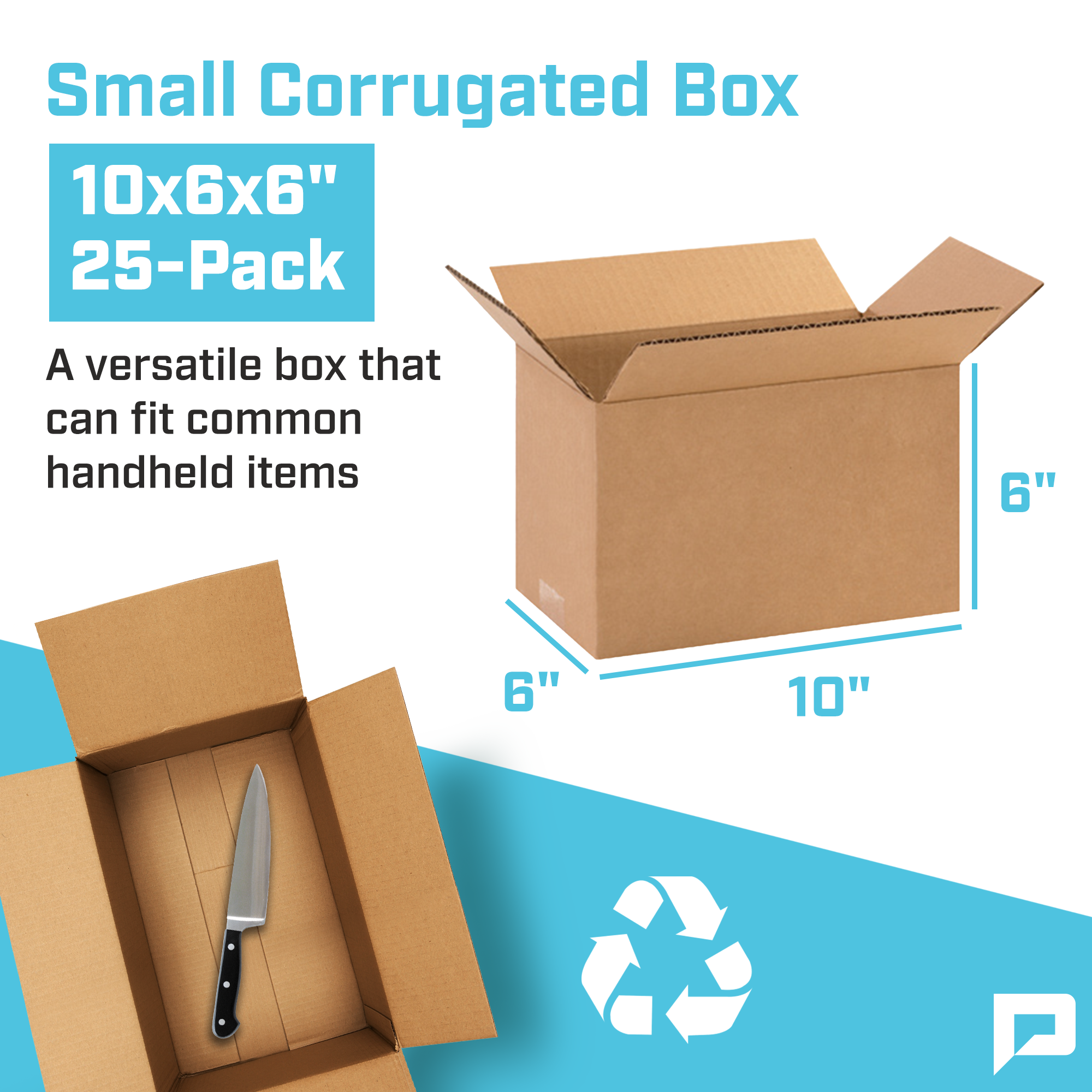 Corrugated Boxes: 10"L x 6"W x 6"H Corrugated Box. 25-Pack, Shipped Flat. Reusable & Recyclable.